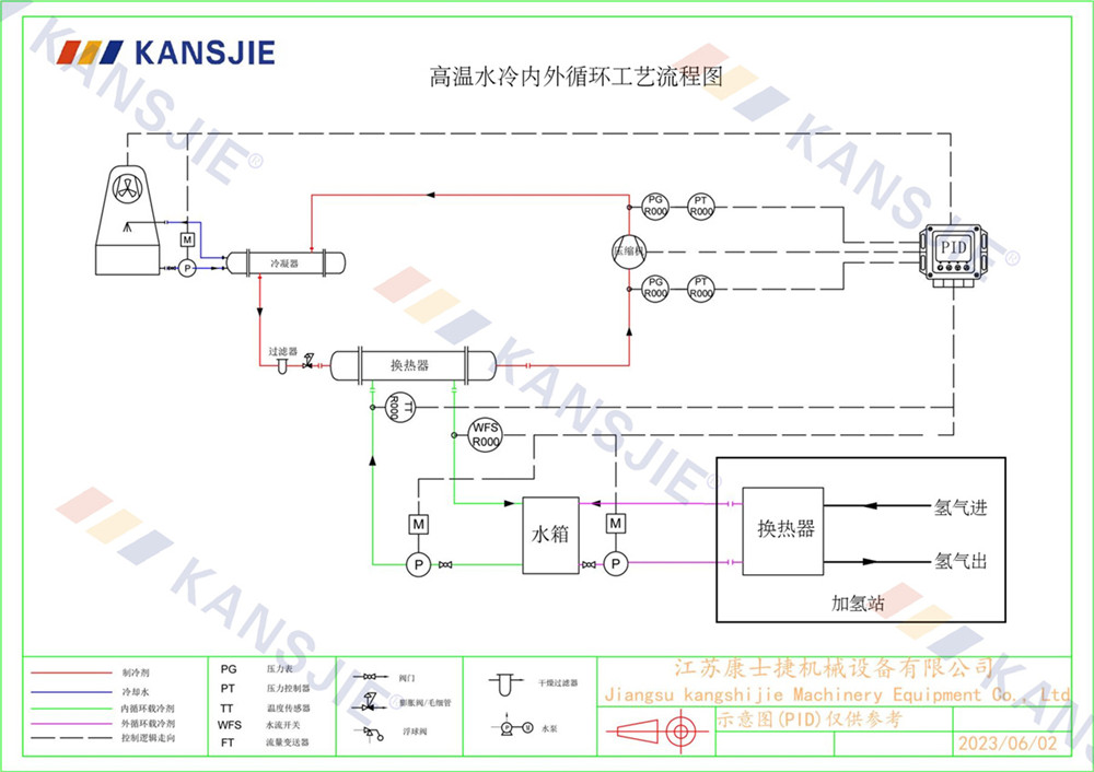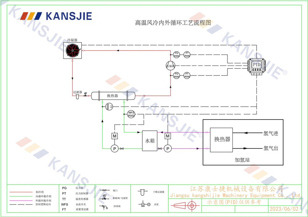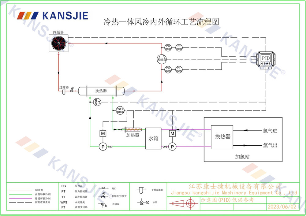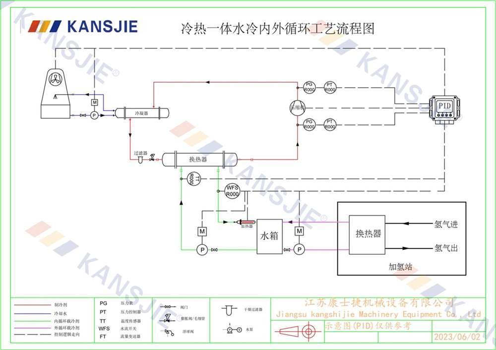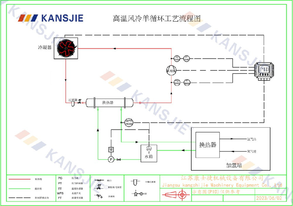 加氫站冷卻係(xì)統的主要(yào)作(zuò)用是確保加氫設備在正常工(gōng)作溫度範圍內運行,同時防止過熱或過冷對設備性能的影響。冷(lěng)卻係統通過將熱量從被冷卻對象轉移到冷卻介質,然後再(zài)將熱量釋放到環境中來實現這一目標。