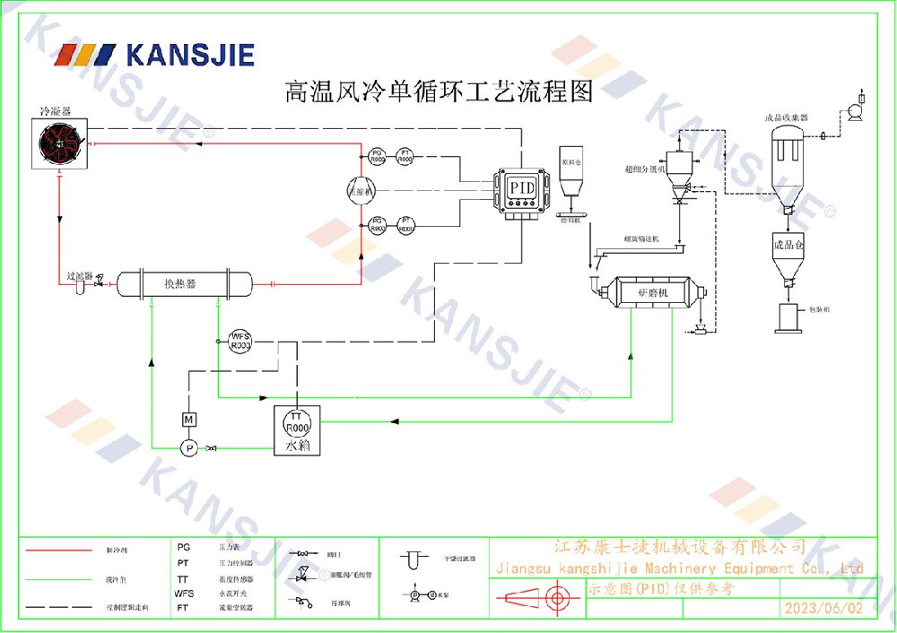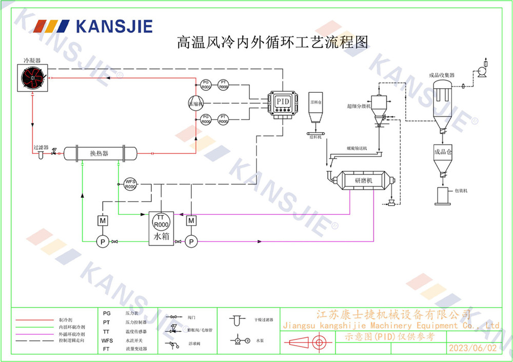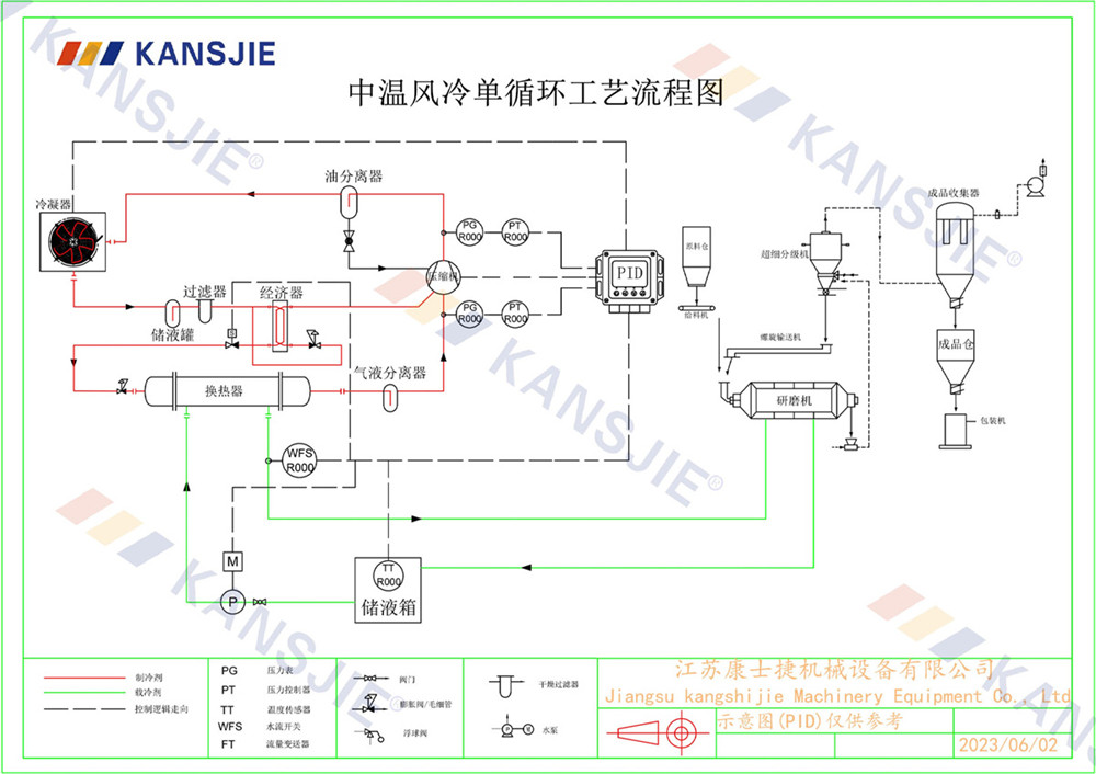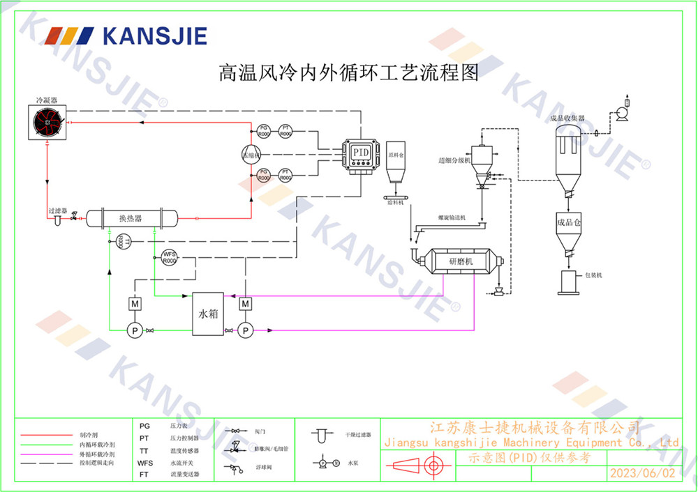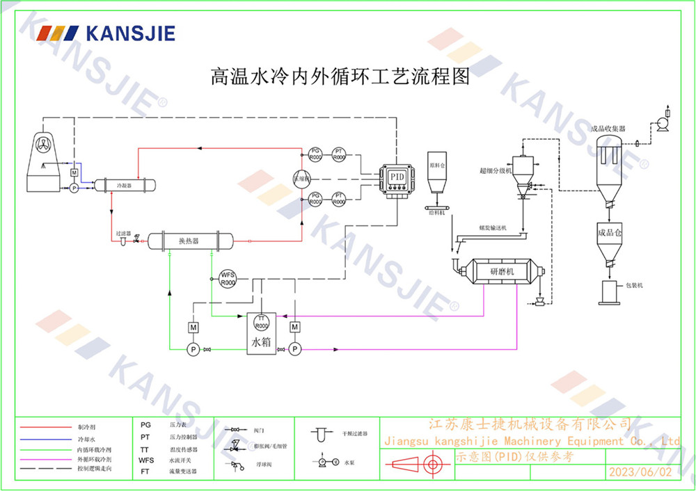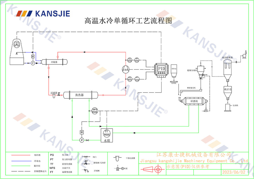 1、冷水機通過製冷係統將水冷卻到一定溫度,然後通過循環係統將冷卻水輸送到研磨(mó)機中。